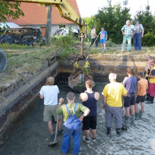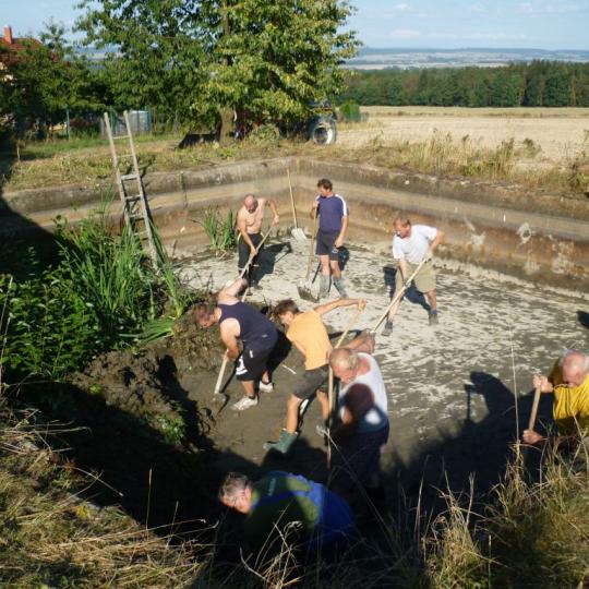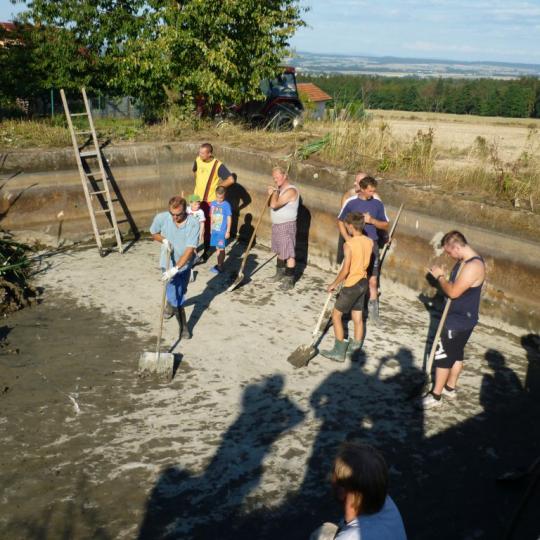Čištění požární nádrže Stříhanov 2016